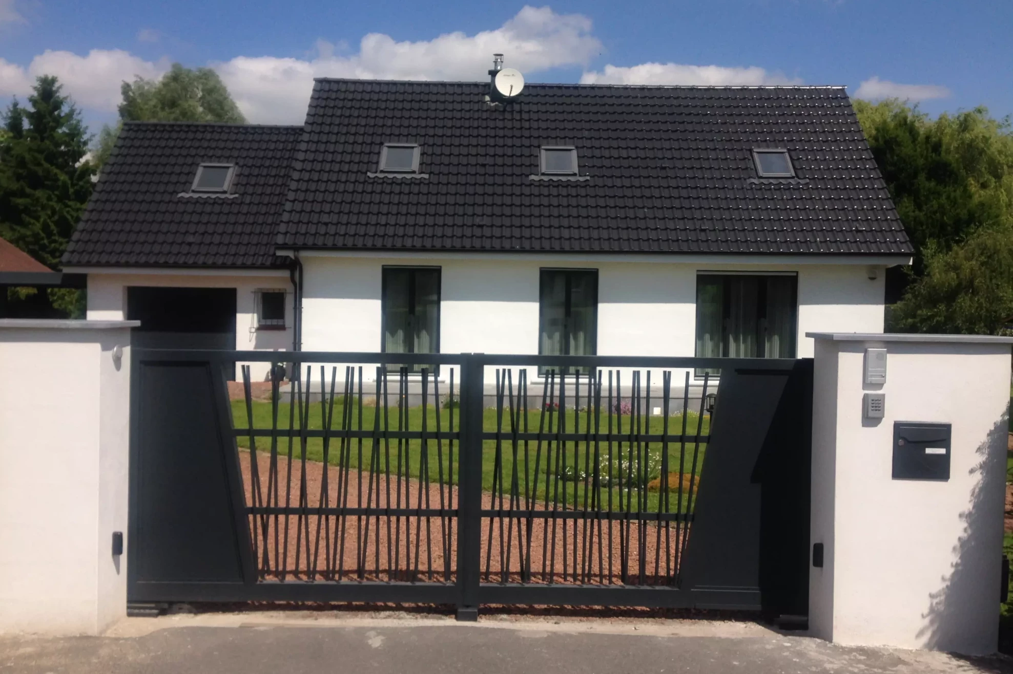 PORTAIL MARCILLY COULISSANT 7016FT BAL NUMERO DE RUE CLOTURE EN KIT LATTES 80MM installation newtech fermetures a Brillon (3)